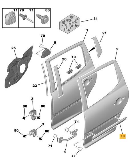 8546AG PEUGEOT 207 ACHTER PORTIERLIJST LINKS Primer / Chrome 8546AG